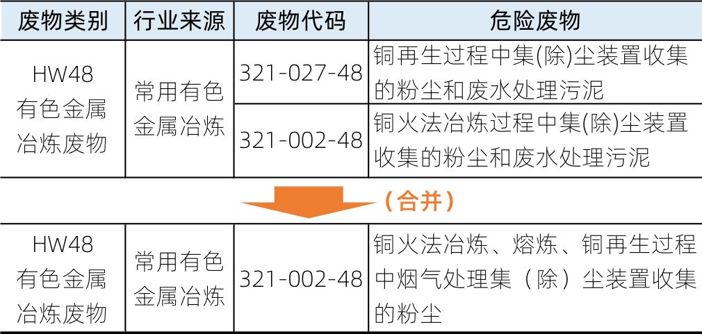 ( 7 )將廢物代碼為“321-027-48”的危險廢物合并到廢物代碼為“321-002-48”的危險廢物中。